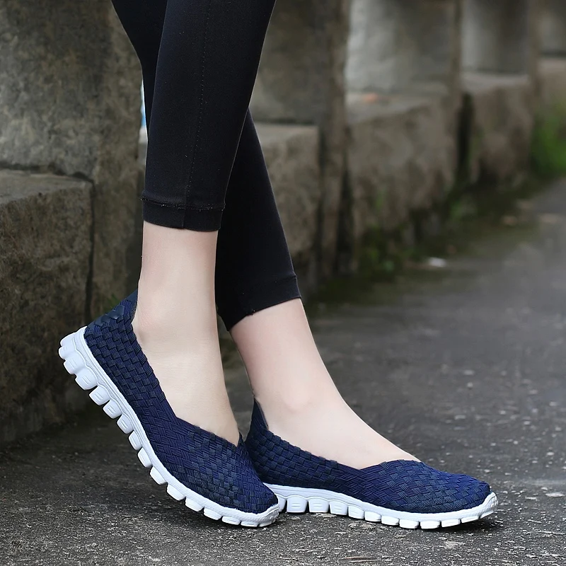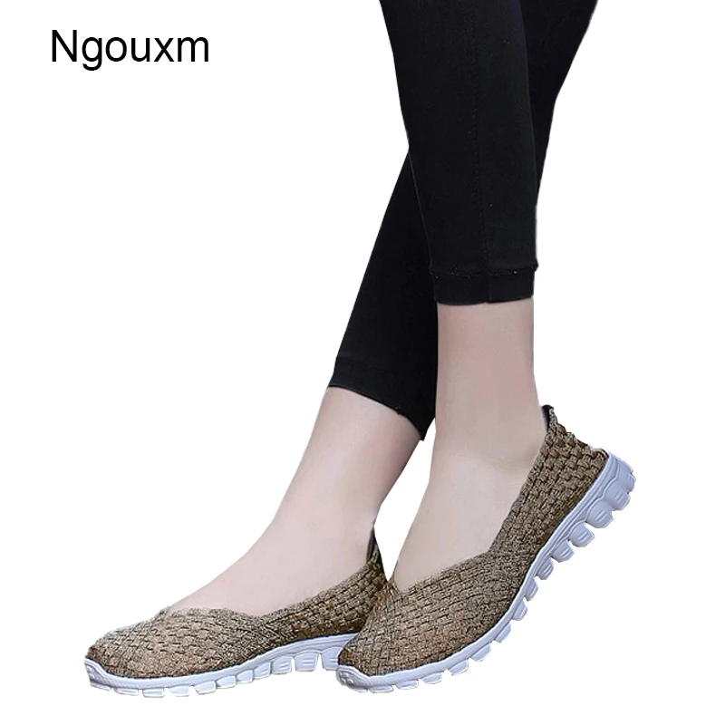 Туфли Ngouxm женские на плоской подошве, плетеные эластичные лоферы, Повседневная Удобная нейлоновая обувь без застежки, с круглым носком, ручная работа, летние