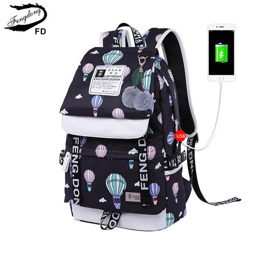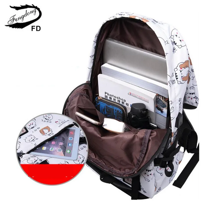 Женский водонепроницаемый рюкзак для ноутбука Fengdong, Черный дорожный школьный рюкзак с принтом кота для девочек с usb-разъемом, 2019