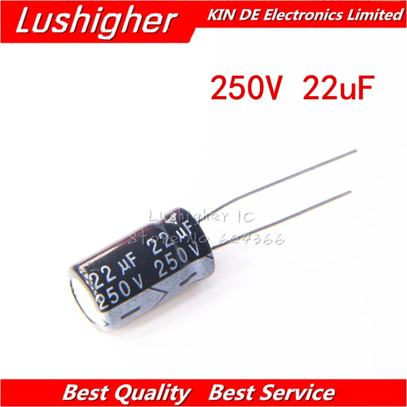 10 шт., алюминиевый электролитический конденсатор, 250 В, 22 мкФ, 10*17 мм, 22 мкФ, 250 В, 10x17 мм