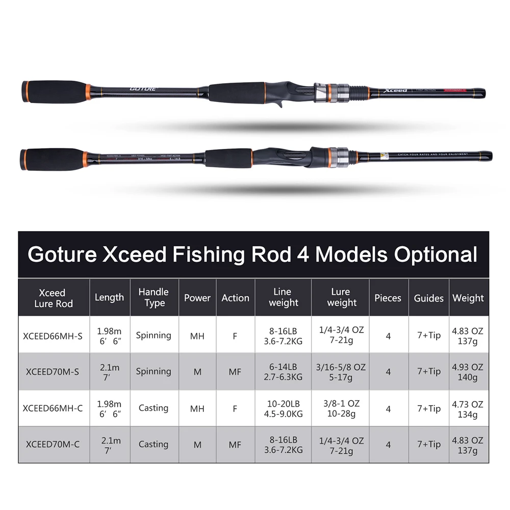 Goture Новый Xceed серии спиннинг приманка стержень 1,98 м2,1 м 4 Секций Из Углеродного Волокна удочка HMM Мощность Spnningлитья стержень спининг