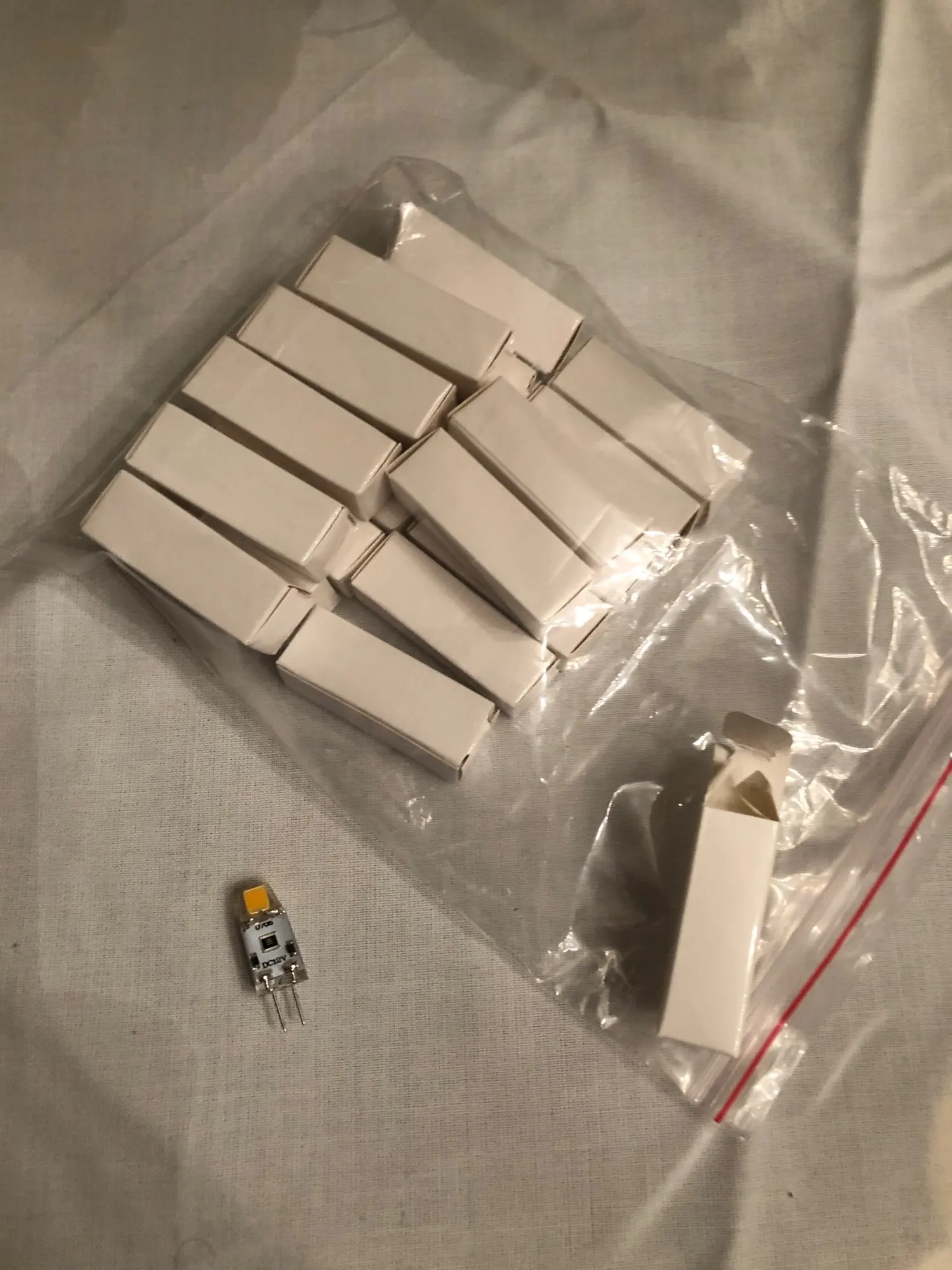 Доставка 2 недели в Новосибирск. Силиконовые G4 12 В естественный белый. Брали в люстру на замену обычным лампам накаливания. Замучились их менять, горят 1-2 в неделю. Посмотрим как эти поведут себя. Знаю что так не делают, из-за переменного тока есть мерцание, на фото это заметно. Но меня все устраивает. Постепенно по мере перегорания заменю все обычные на светодиоды.