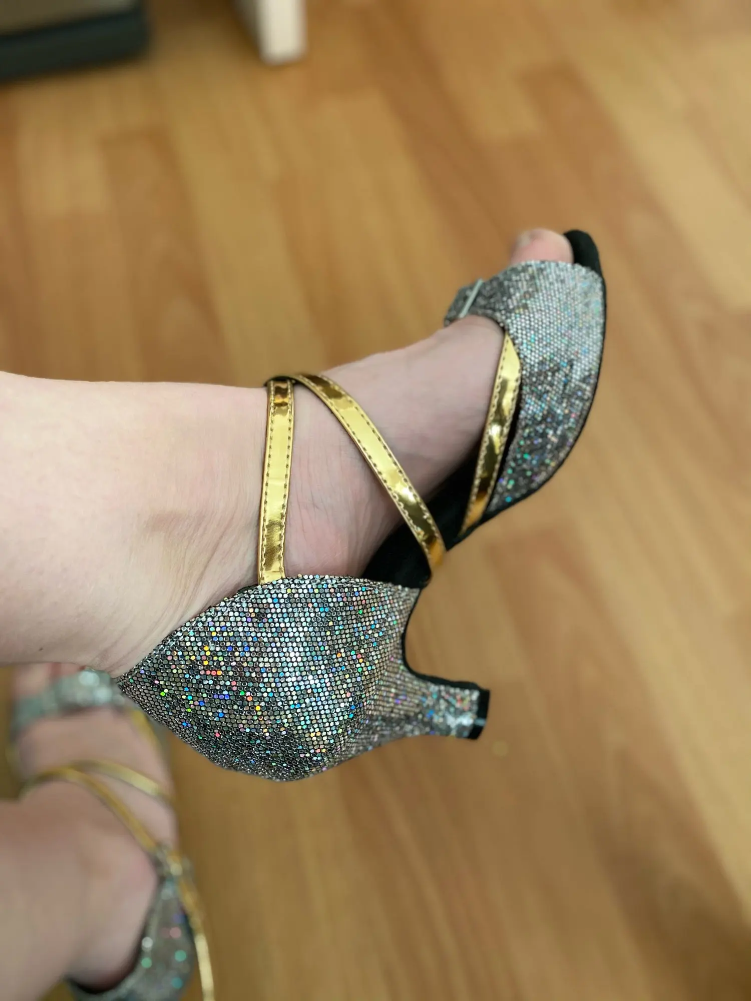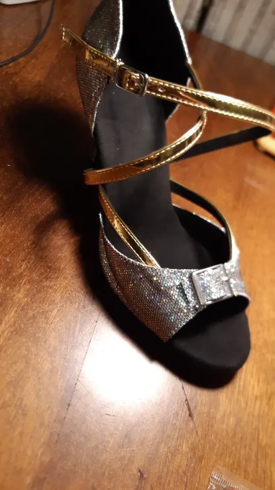 Туфли превзошли мои ожидания, мягкие, отлично сидят на ноге, держат стопу, удобная колодка. Прекрасно подходят до социальных латиноамериканских танцев-достаточно толстая,но при этом мягкая и гнущаяся подошва. Блестки немного опадают, но все не опадут:) По объёму ноги идеально подошли, хотя у меня не узкая стопа и часто проблематично подобрать туфли. Доставка очень быстрая - за 10 дней. Превосходно!