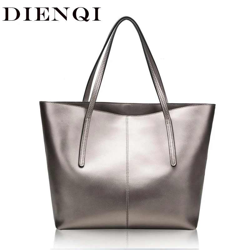 Женская сумка DIENQI из натуральной кожи серебристого цвета, большая сумка, модная ручная сумка с верхней ручкой, женская сумка-тоут, большая женская роскошная сумка на плечо