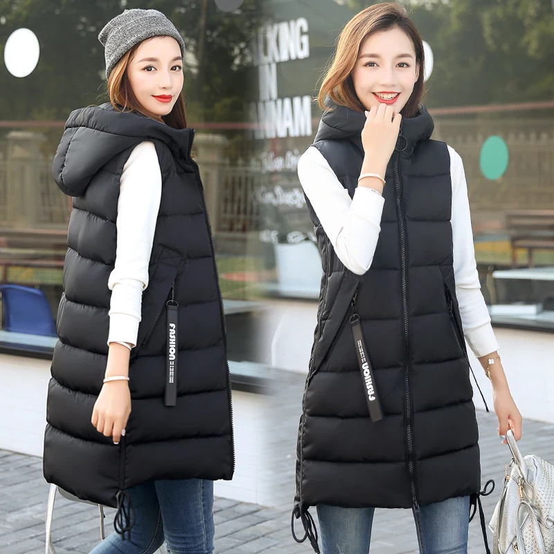 Женский жилет с капюшоном Harajuku, теплый длинный жилет без рукаво...