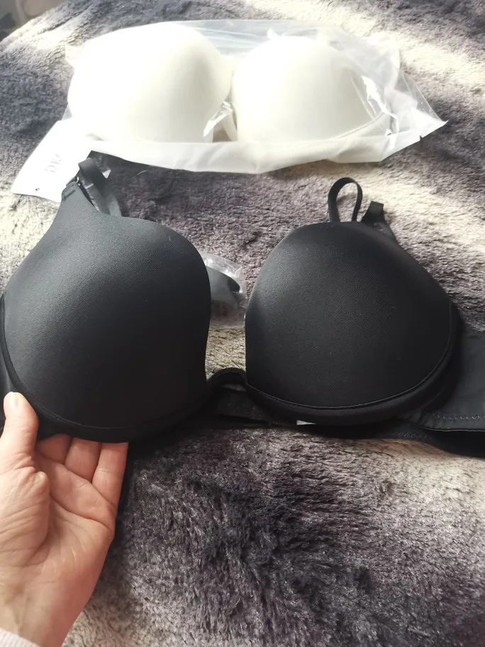 Очень точный товар. Удобно и позволяет глубоким вырезом. Отличная поддержка. Просто странный пластиковый запах, когда вынул из упаковки, но ничего слишком плохого. Я французский 90C и получил 85C, и он очень хорошо подходит (самый маленький крючок). Об усилении толчки: я сделал фотографию внутри (верх-двойной толчок от h & m), это простая толчка, но она даст вам больше объема, но и ничего слишком большого;) Только критика, которую я хотел бы сделать для ремешков, они были бы достойны лучшего качества