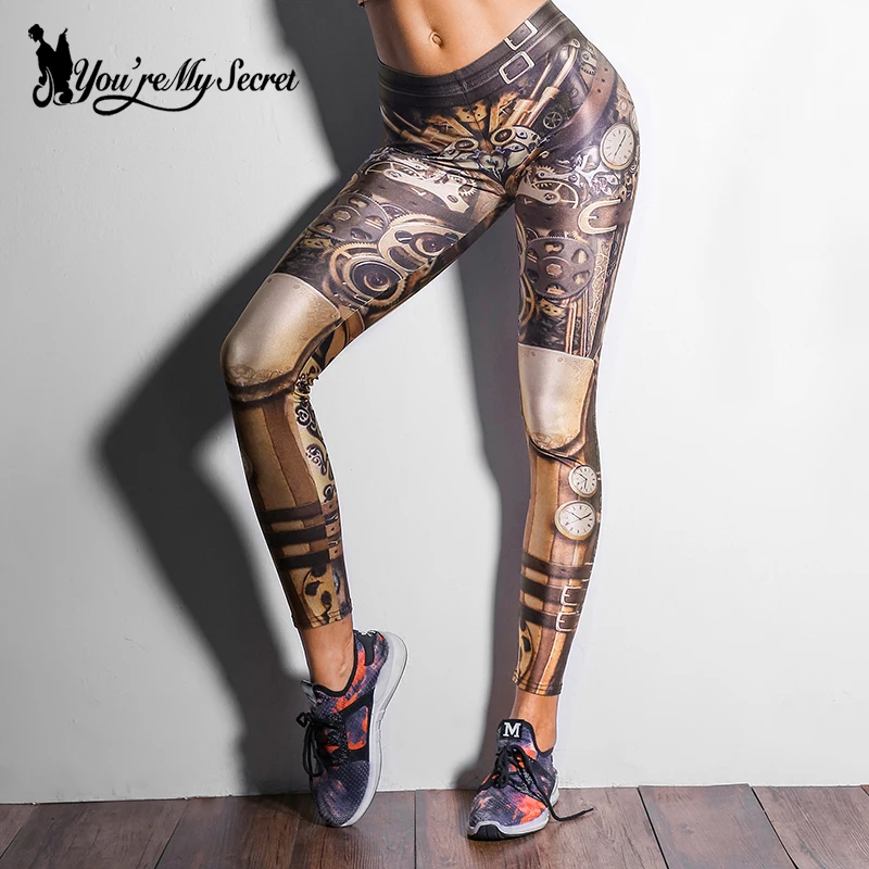 Женские леггинсы в стиле стимпанк You Are My Secret, высококачественные леггинсы с 3D-принтом в виде механической экипировки, брюки до щиколотки