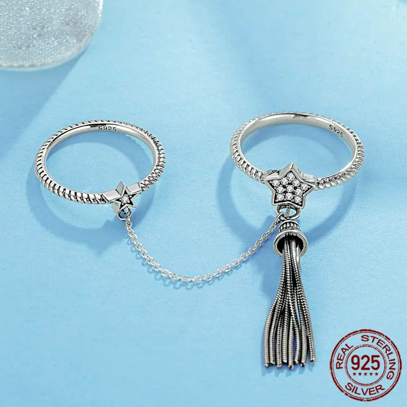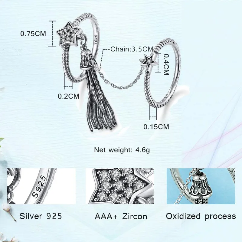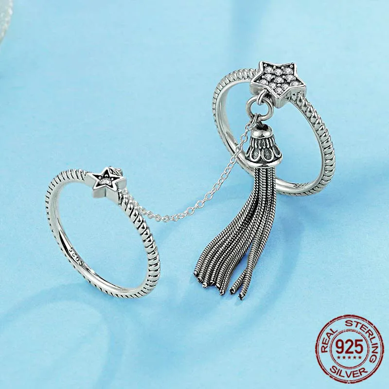 Женское кольцо из серебра 925 пробы с подвеской в виде звезды