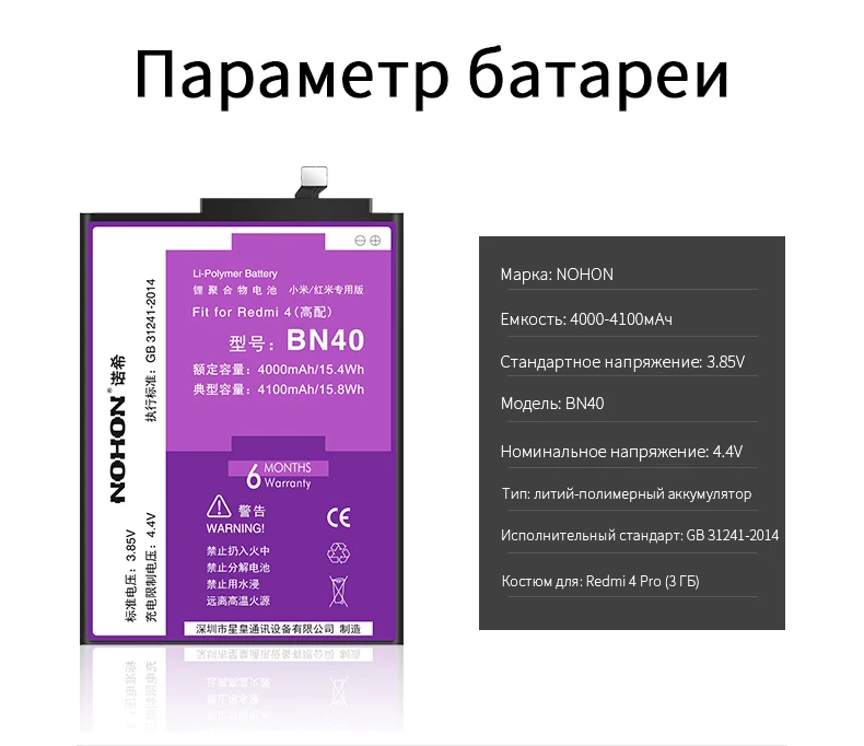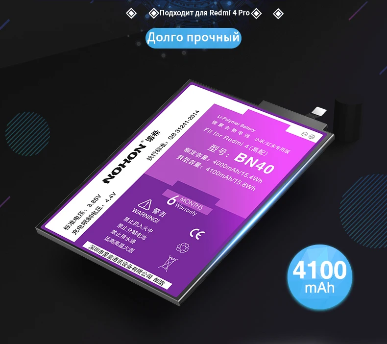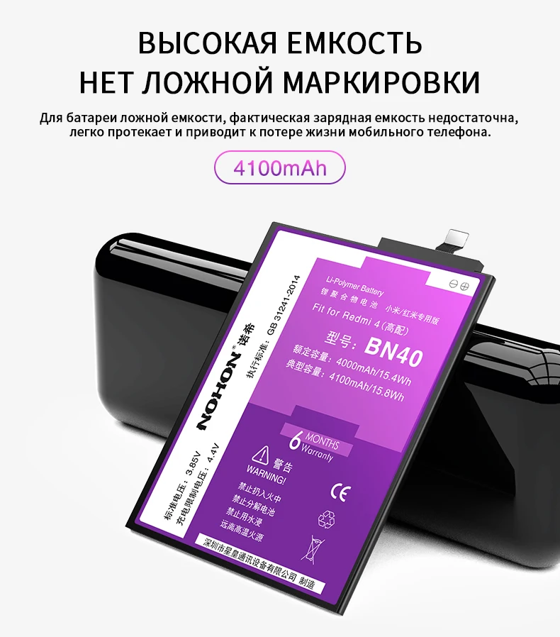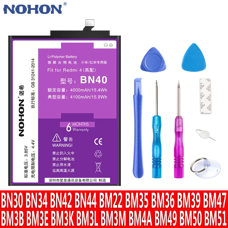 Аккумулятор NOHON для Xiaomi Redmi 4A 5A 5 Plus 3 3S 4 4X Pro Mi 4C 5S BN30 BN34 BN42 BN44 BM22 BM35 BM36 BM39 BM47 Оригинальная сменный литий-полимерный батарея