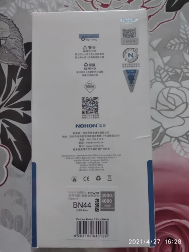 Доставка очень долгая - 3 месяца. Трек дошел до границы с Китаем и там замер на 2 месяца. Продавец дважды сам продлял защиту. Посылка всё-таки добралась до меня. По результатам нескольких дней АКБ выдает 90% (2700 мАч) от проектной емкости, что в целом очень неплохо. Этой емкости на день использования вполне хватает. Ранее купленный на Али АКБ у другого продавца выдавал всего 40% (1400 мАч) и его хватало только на пол дня. Поэтому несмотря на долгий срок доставки, покупкой доволен. Продавца рекомендую.