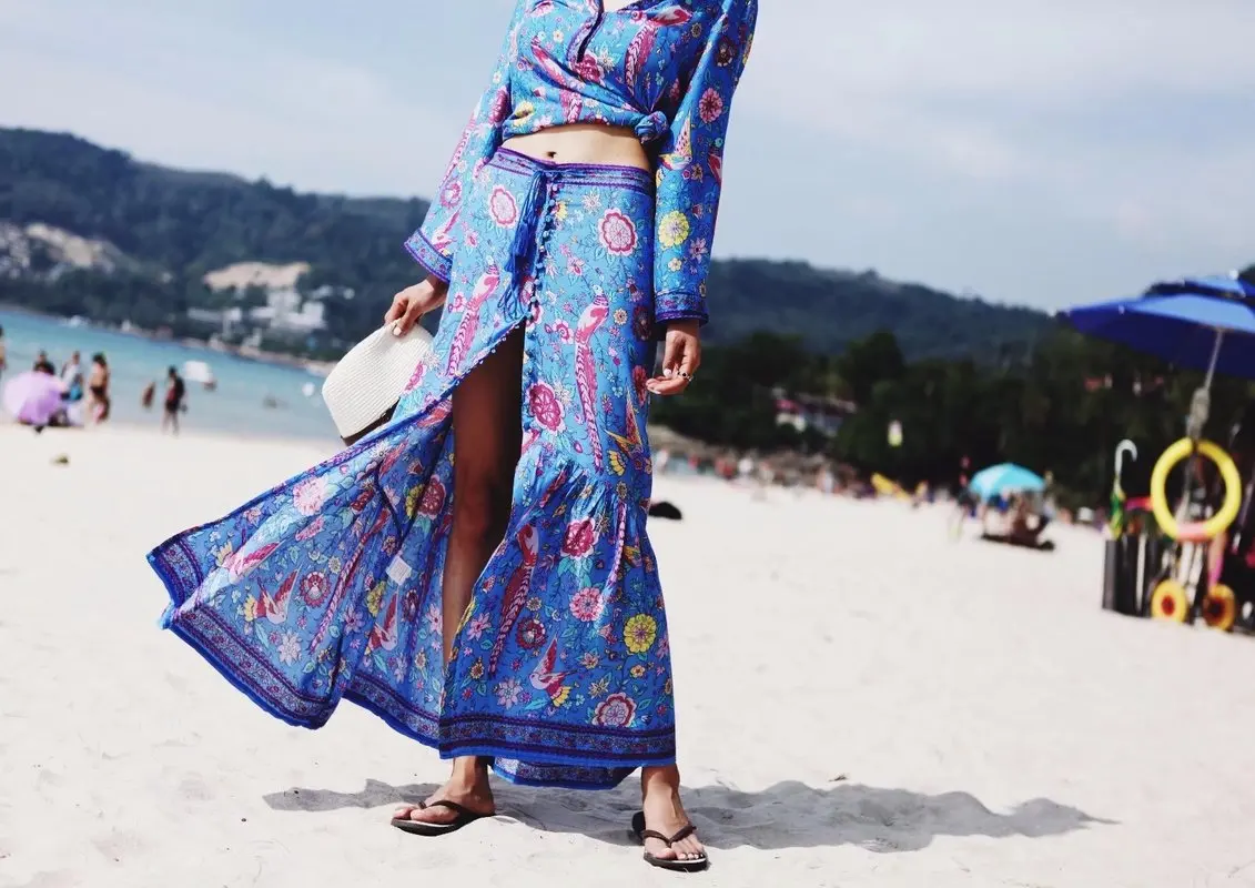 Винтажная шикарная Женская пляжная юбка в стиле хиппи с цветочным п...