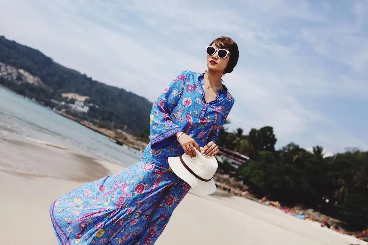 Винтажное шикарное женское пляжное платье с длинным рукавом и цвето...