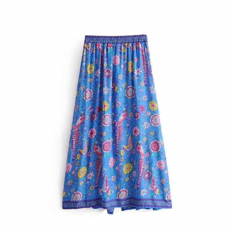 Винтажная шикарная Женская юбка в стиле хиппи с цветочным принтом и...