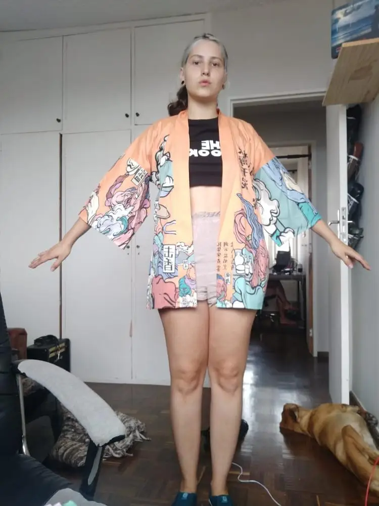 Соответствует описанию. Я рекомендую его и чувствую себя очень доволен продуктом. Выглядит идеально, чтобы носить в жаркие дни, так как это тонкая ткань, тонкая и легкая на ощупь Я рост 167 см и думаю, что он выглядит очень мило. Хотя я не очень хорошо фотографирую.