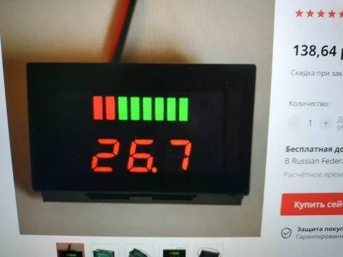 32 дня доставки в Гамбург Германия с aliexp. Трудно найти дешевый вольтметр, который также подходит для 36v-akkus + +. (Этот вольтметр не имеет дефекта 40 В или требуется дополнительный собственный разъем питания.) Маленькая компактная доска может быть использована, тщательно отрегулирована или в разных местах. Яркие цвета, теплые и красивые. Идеально подходит для велосипедной батареи. Прочный подходит. (Один маленький минус: небольшие колебания около 0,3 мА.) Непревзойденная цена, рекомендуется. Большое спасибо!