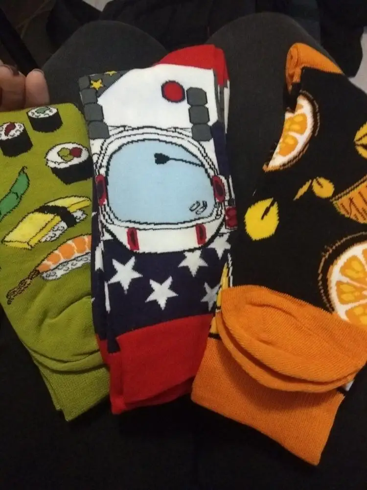 Очень милые носки. Хорошее качество, только это было немного сложно с размером, так как он был все один размер, поэтому некоторые носки немного больше, чем другие. В любом случае, я и мой муж довольны этим.