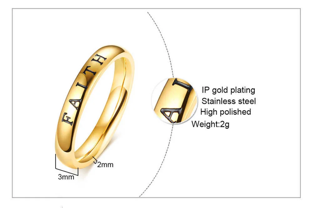 Женское кольцо Vnox Вера Надежда, из нержавеющей стали, 3 цвета