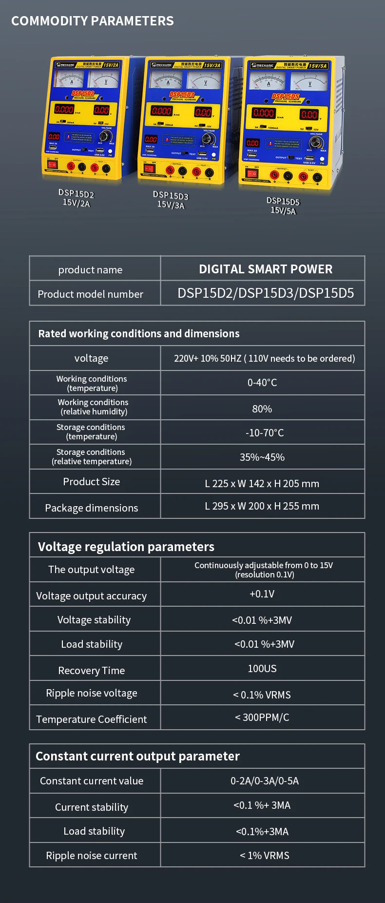 Механик DPS серии цифровой источник питания постоянного тока -- DSP15D3 : 15V 3A / DSP15D5 : 15V 5A