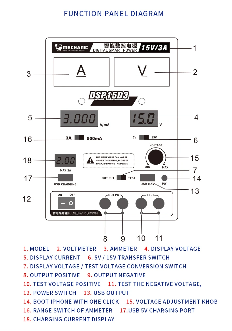 Mechanic DPS серия Цифровой источник питания постоянного тока 15 в 3A 5A четыре высокоточных тока цифровой дисплей, 0-3A/5A ток, 0-15 в, 5 В USB выход СВЕТОДИОДНЫЙ Дисплей ток, удобно менять мобильные телефоны/планшеты и другие устройства.