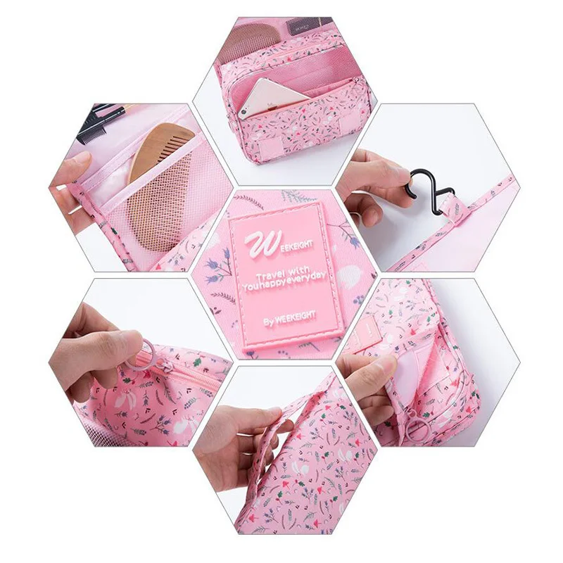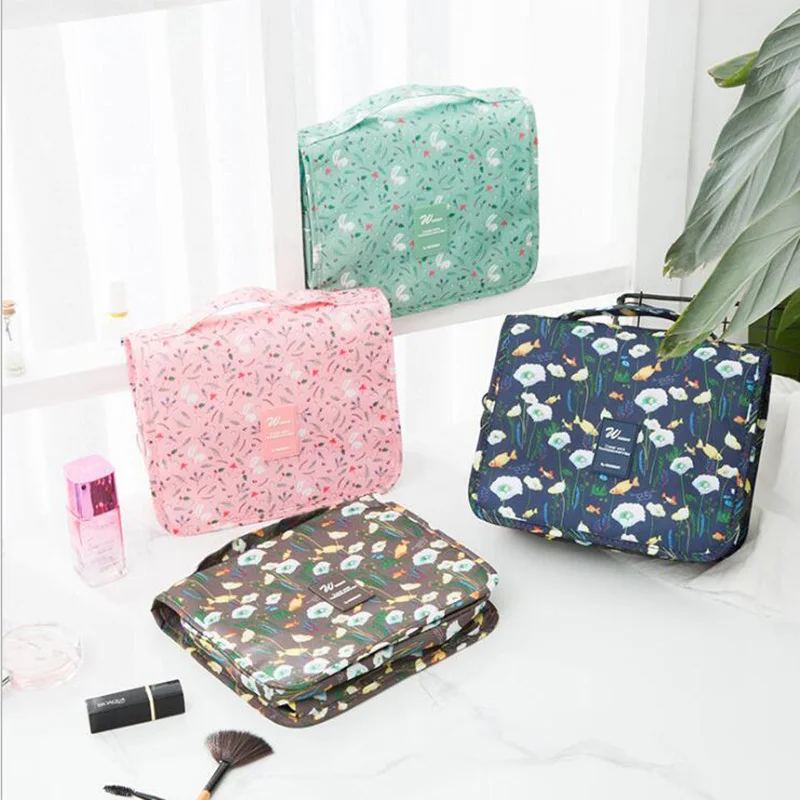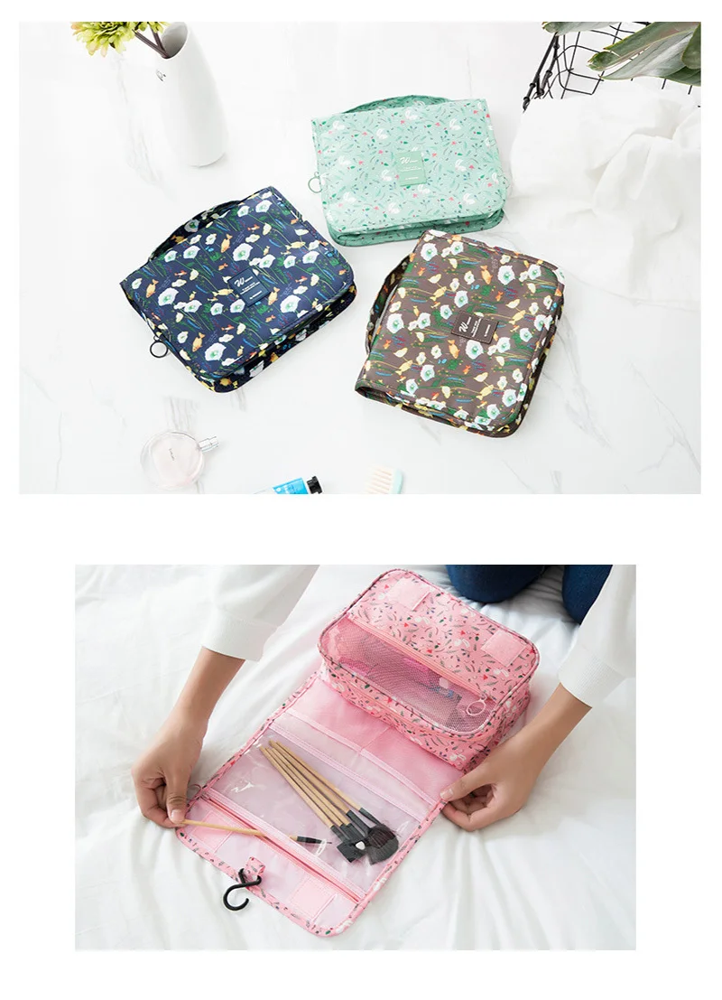 Дорожная Женская висячая сумка для макияжа, переносная водонепроницаемая сумка с цветочным узором для мытья, повседневные принадлежности для макияжа, сумки для макияжа