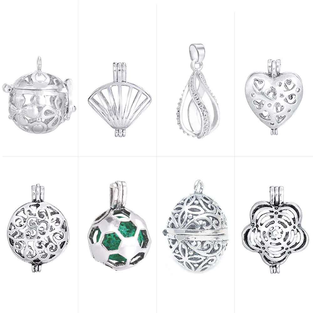 10 шт. DIY Стеклянная жемчужная клетка медальон Кулон старинный ароматерапия эфирное масло диффузор ожерелье медальон для ювелирных изделий шар