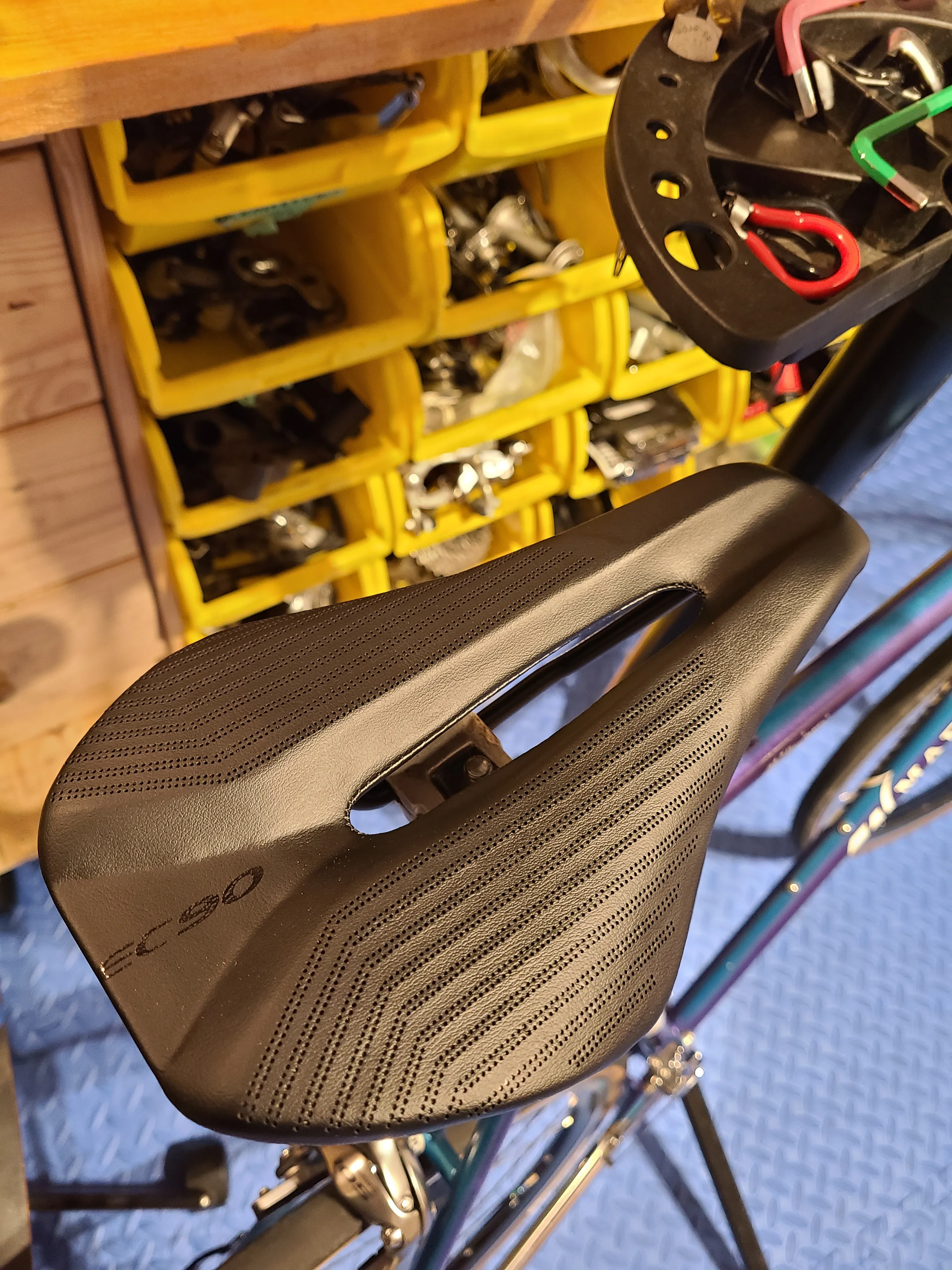 Седло хорошее. Качество неплохое. Но у меня есть еще один старше ec 90, который мне больше нравится. Это новая версия, и они сделали его слишком широким спереди. Старый, у меня есть размеры в ширину спереди около 4 сантиметров, и этот новый около 7 сантиметров, и, честно говоря, для меня это гораздо более неудобно.