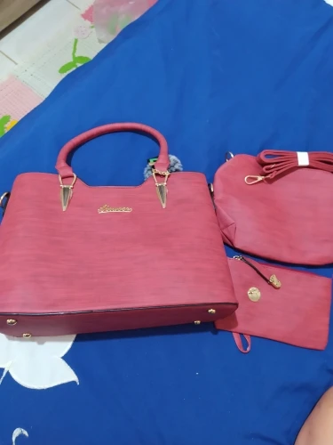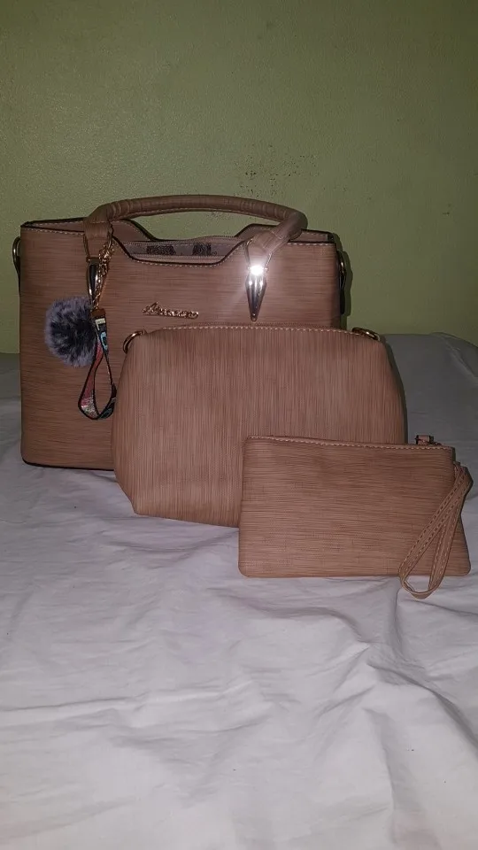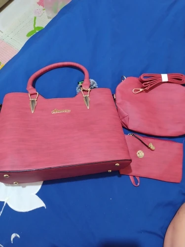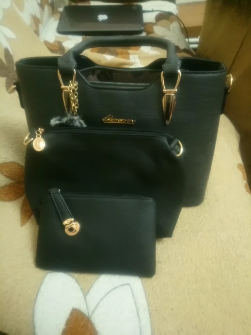 Хорошо упаковано. Быстро пришло. Большая сумка и маленькая без претензий - не считая жуткого запаха, но может выветрится. Средняя сумочка пришла грязная (забрызганная) и замок окислен! Видно на фото. Не из кожи или зама) скорее клеёнчатый материал.