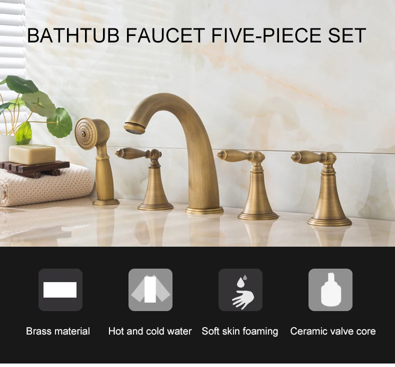 Смесители для ванны 5 шт., античный бронзовый кран для ванны с ручным душем, античный кран для ванны ELF003H