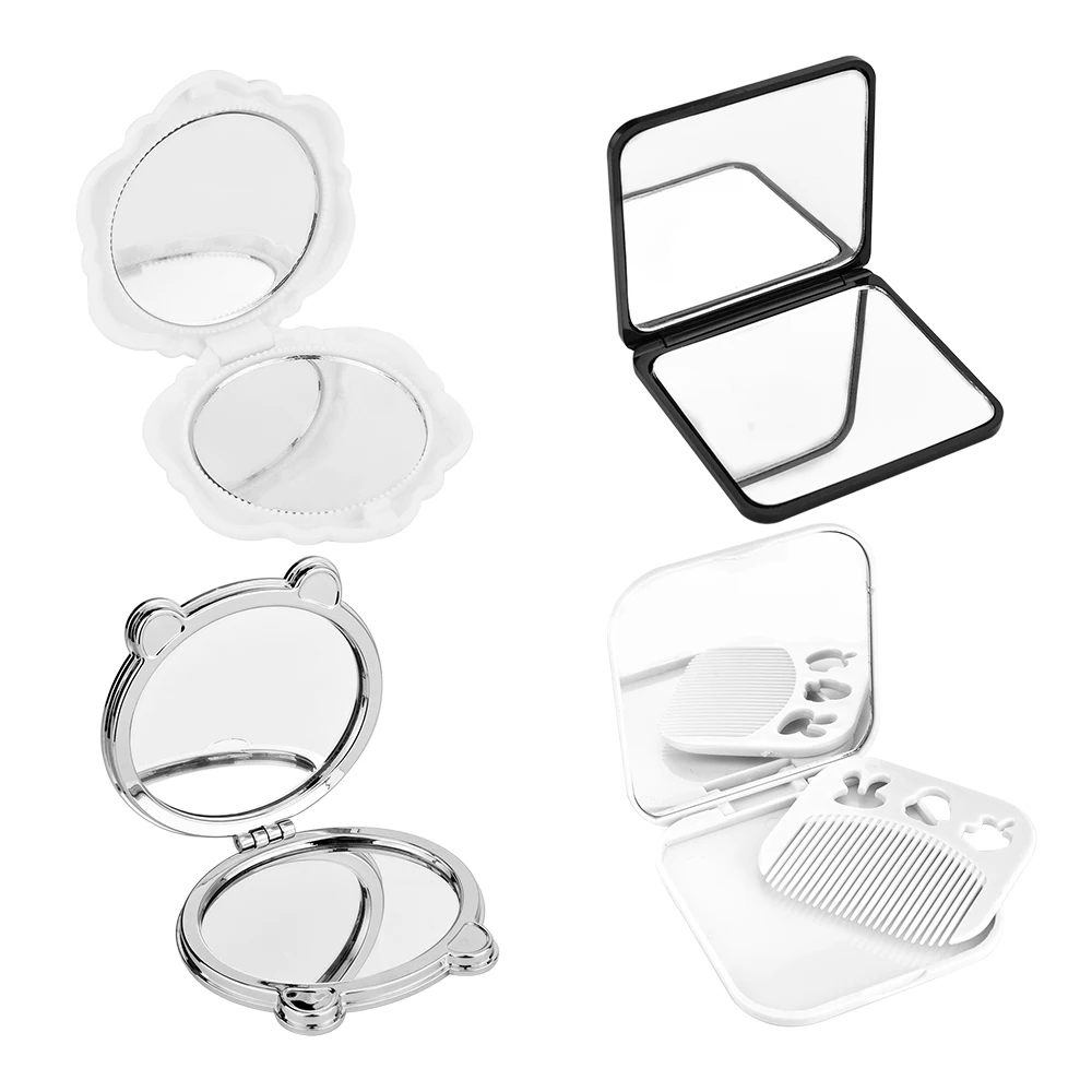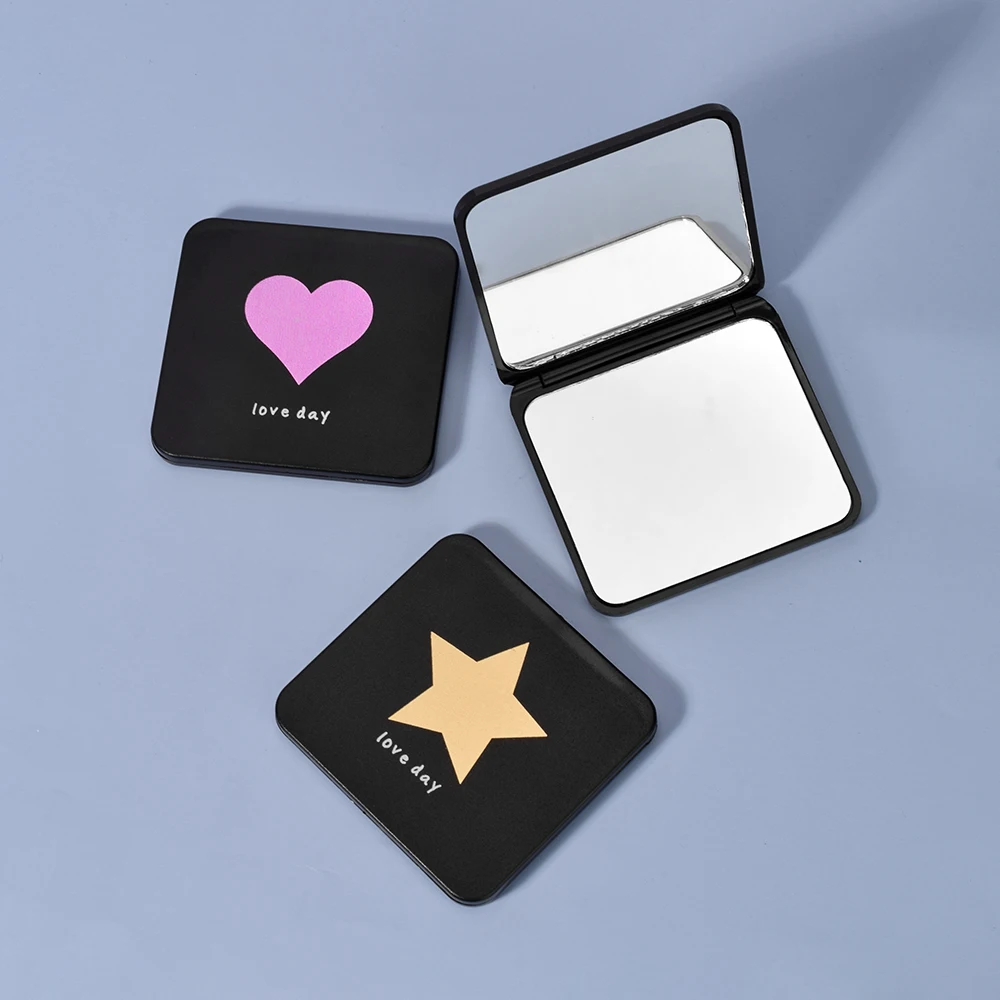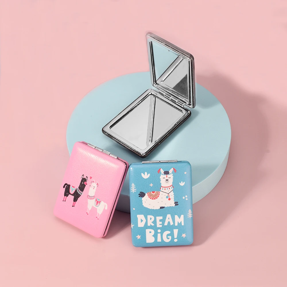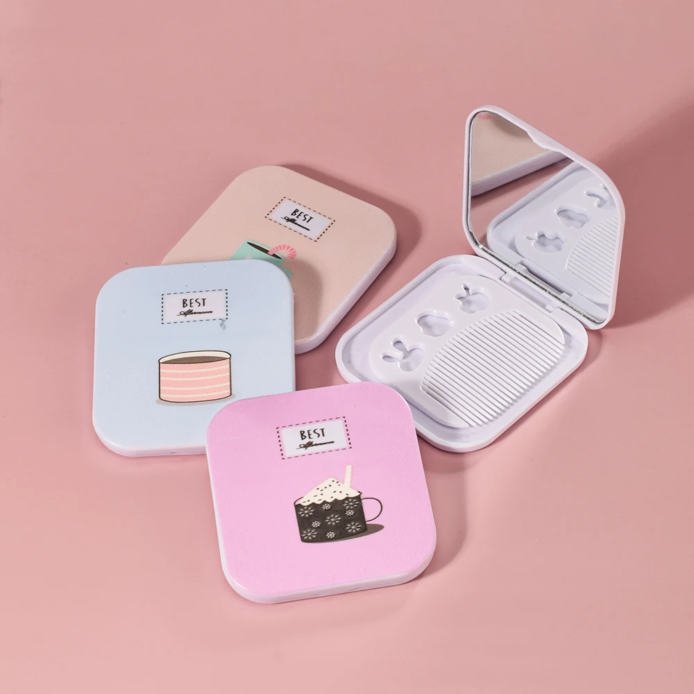 Компактное мини-зеркало для девочек, симпатичное зеркало для макияжа с расческой, портативное розовое зеркало в форме ромба для рук