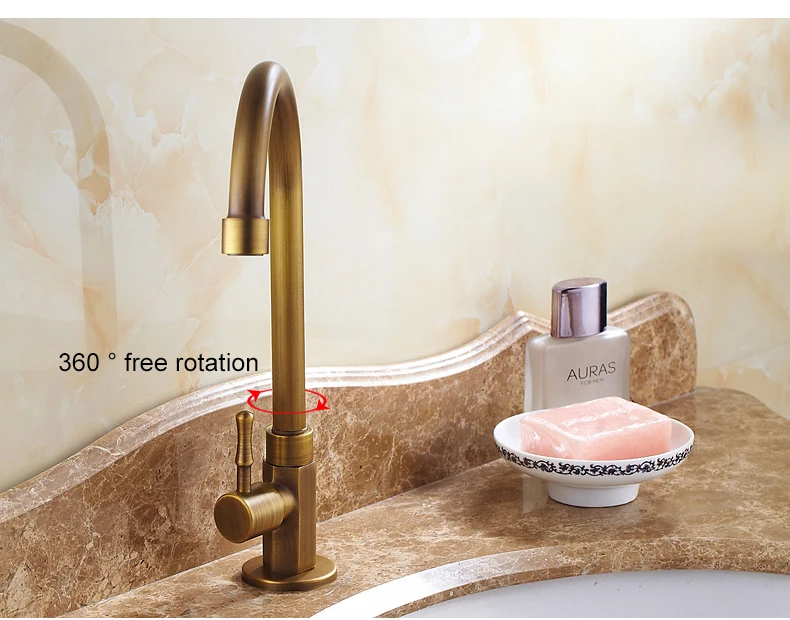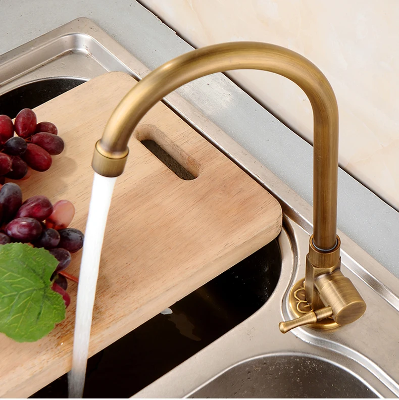 Кран для холодной кухни, античный бронзовый кран для раковины, 360 градусов, одно отверстие, медный кран для кухни ELK12