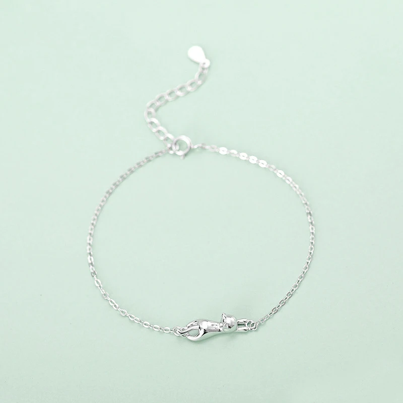 Браслет INZATT из серебра 925 пробы женский, Классический милый глянцевый браслет с маленьким котом, изящная Подарочная бижутерия