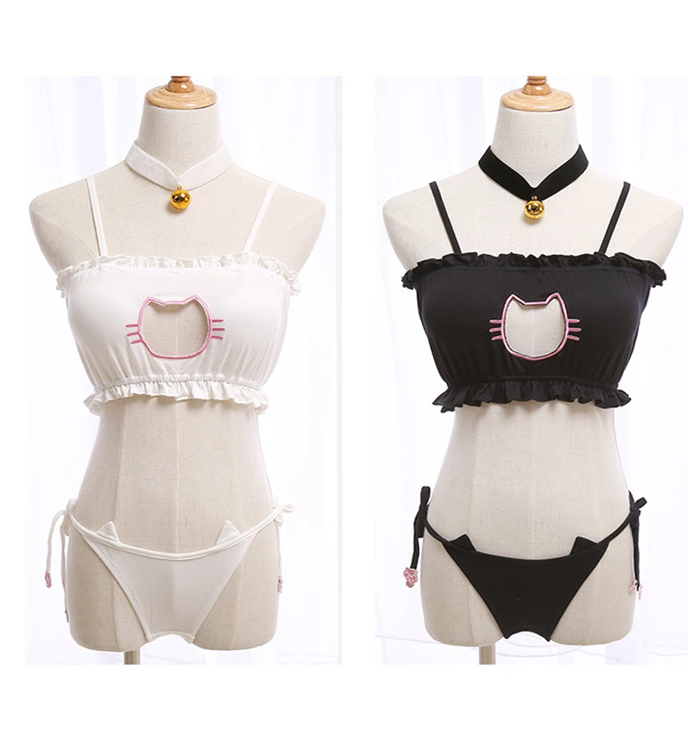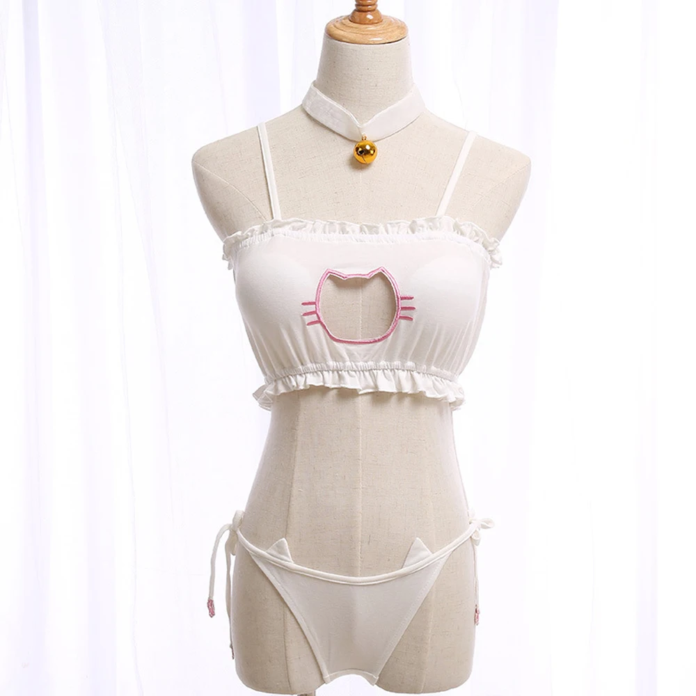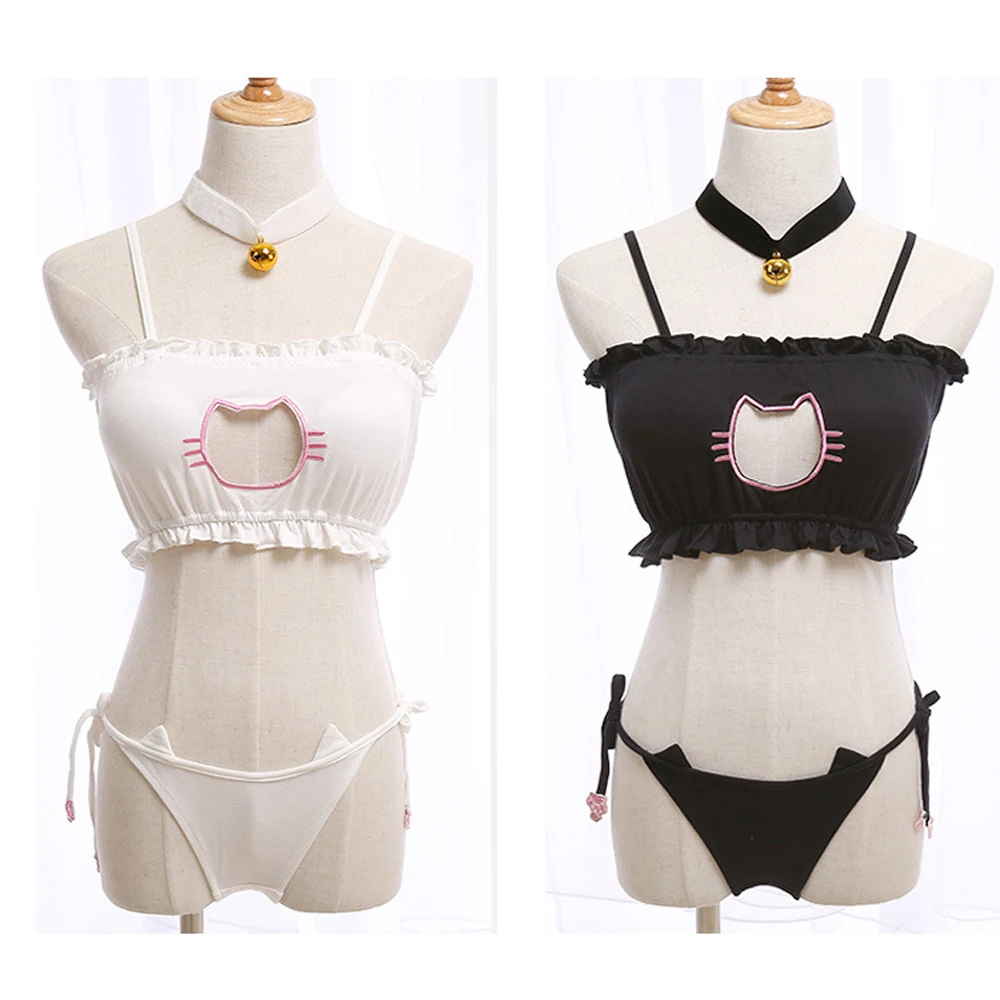 Mitsuishi Kotono Косплэй сексуальный костюм Neko кошка бюстгальтер с замочной скважиной трусы колокол колье воротник комплект нижнего белья Для женщин