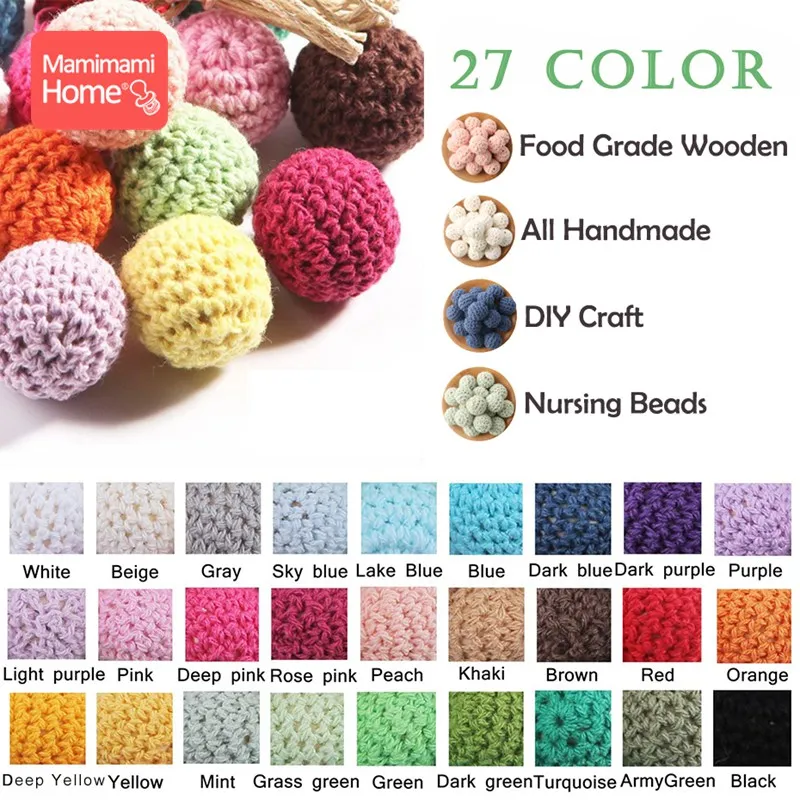 10 шт., деревянные вязаные бусины для прорезывания зубов, 20 мм