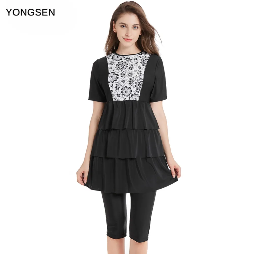 Женский скромный Мусульманский купальник YONGSEN, хиджаб с короткими рукавами, исламский хиджаб, 3 шт., спортивная одежда, размера плюс