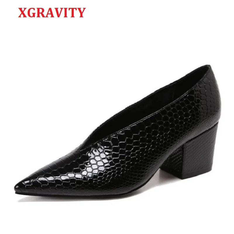 Женские вечерние туфли XGRAVITY, дизайнерские винтажные туфли с крокодиловым узором, с острым носком, V-образным вырезом, на высоком каблуке, C076