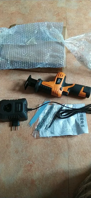 Пила соответствует описание. Достоинство - компактность и малый вес. В комплекте нет переходника для зарядного устройства под европейскую/российскую розетку. Три пилки в комплекте. Две «родных» - металл и дерево. И одна no name.