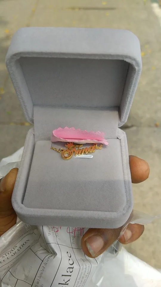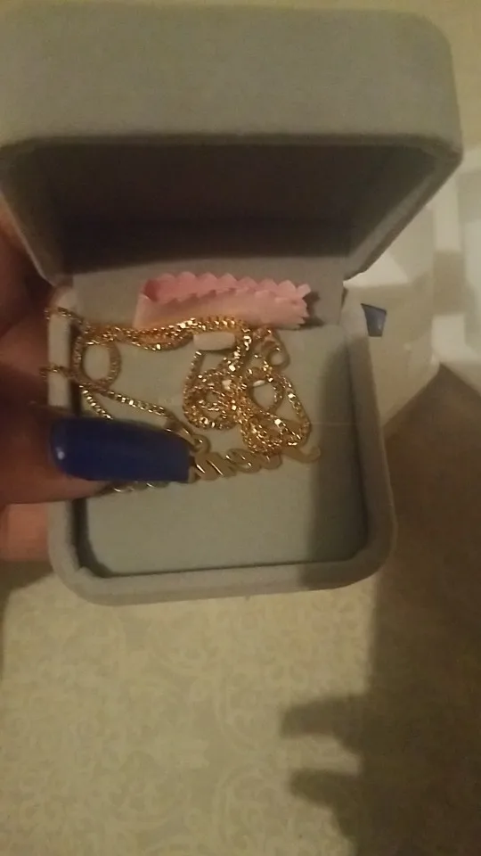 Я могу сказать, что это выглядит как дорогостоящее ювелирное изделие, которое вы получите в ювелирном магазине. Вы даже не можете сказать, что получили товар дешево. Он пришел в красивую серую упаковочную коробку внутри пузырчатой упаковки. Мне очень нравится. Эти слова выглядят очень красиво, это может быть тот стиль, который я выбрал, но мне это нравится! Спасибо! Я не общался с продавцом, я просто терпеливо ожидал, что ожерелье не поторопится.