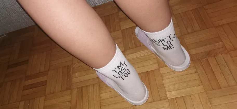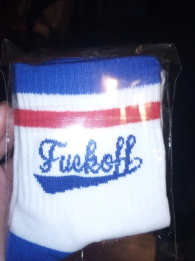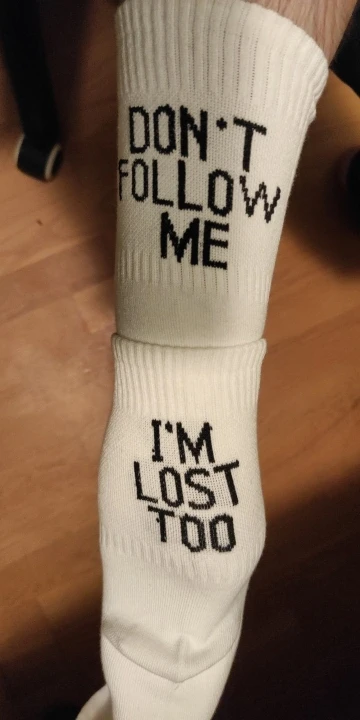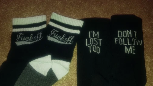 клевые носки, такие же как на картинке, может надпись чуть чуть поменьше