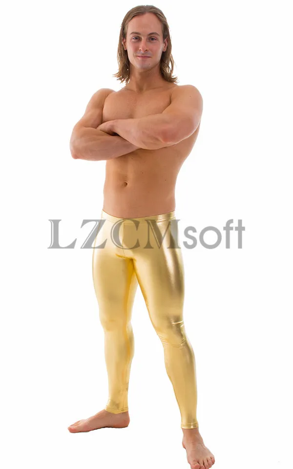 LZCMsosft мужские блестящие металлические золотые танцевальные леггинсы из спандекса с низкой талией костюм для выступлений узкие леггинсы для взрослых