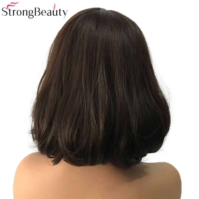 StrongBeauty короткие синтетические парики волосы боб черный/темно-коричневый с челкой натуральный женский парик
