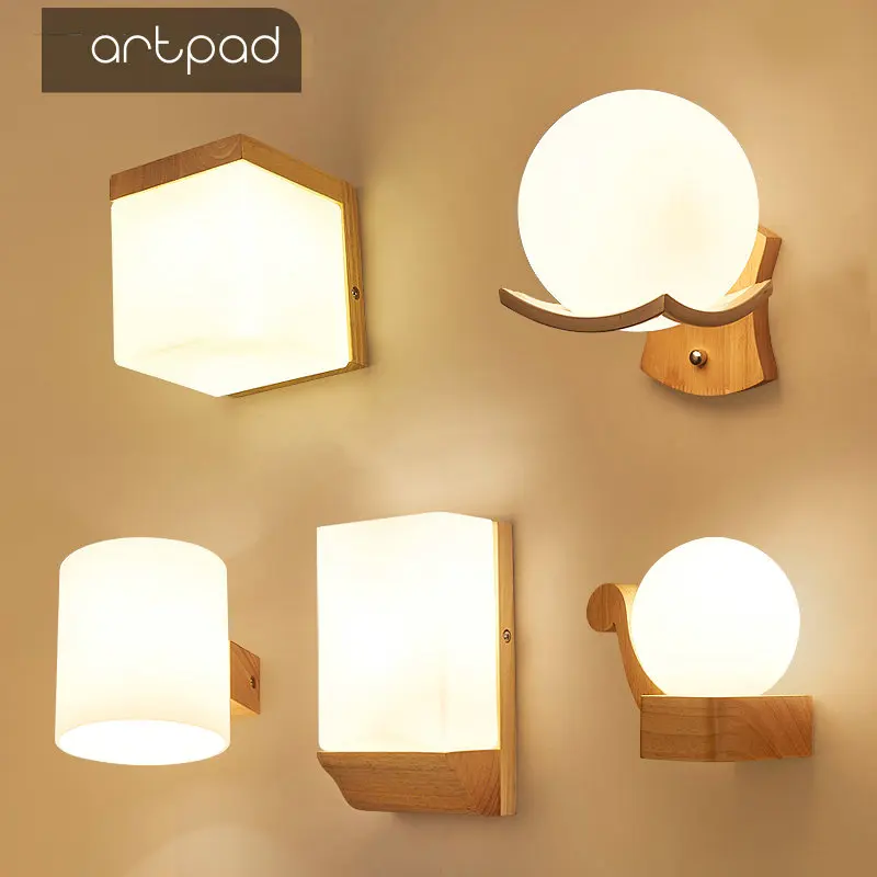 Artpad скандинавский настенный светлый деревянный стеклянный абажур коридор балкон прикроватный Светодиодный Боковой настенный светильник Интерьер для домашнего декора
