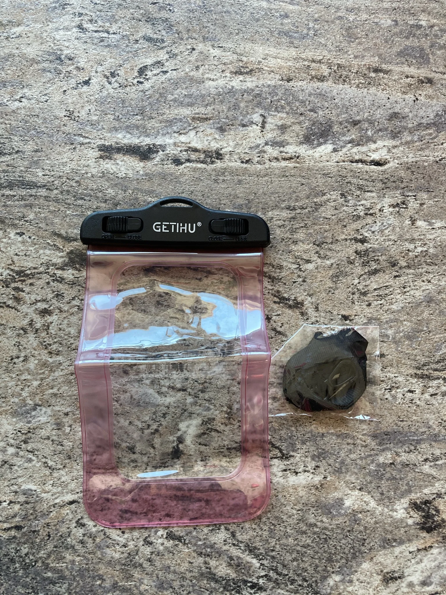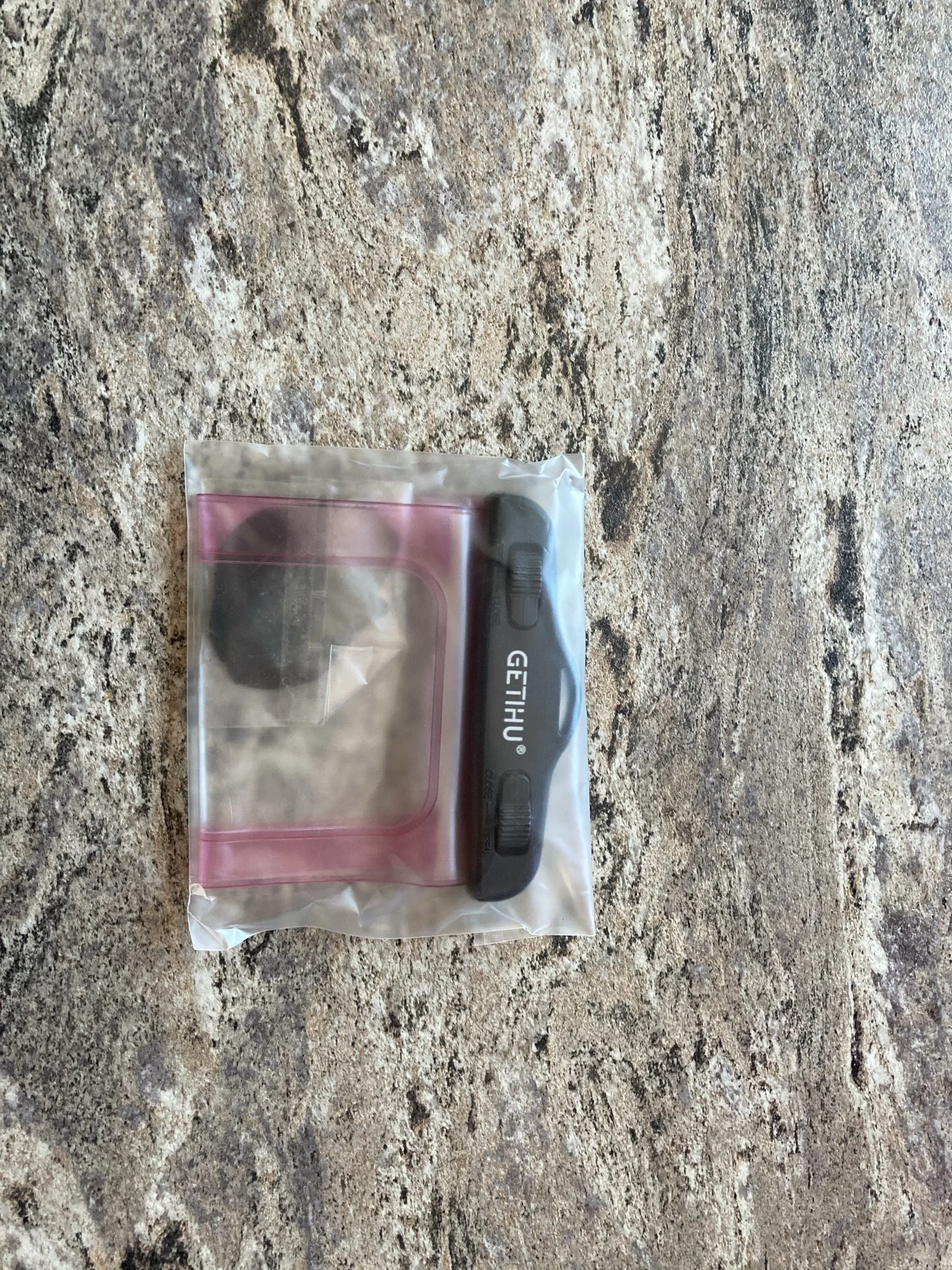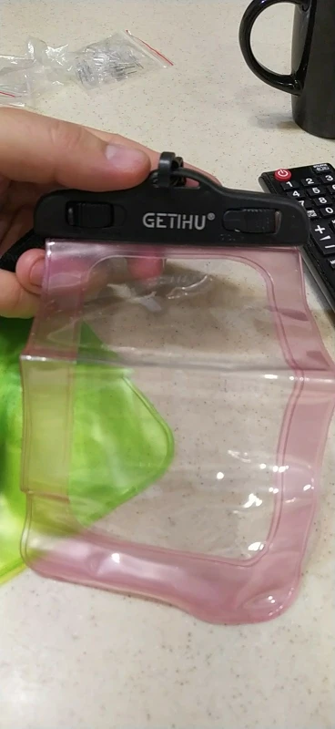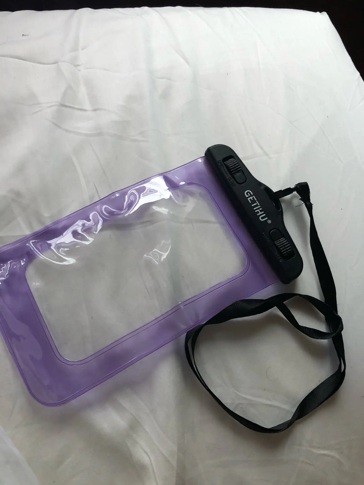 хороший пакет, закрывается кулачковым зажимом. можно управлять тел через плёнку и всё слышно. очень удобный.