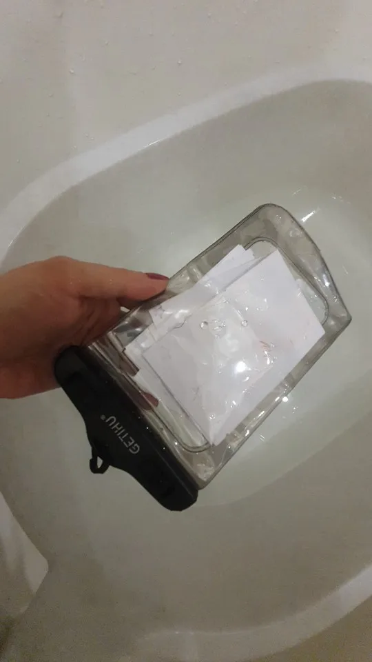 Пробовала снимать на айфон в чехле в море. Тест пройден успешно, вода не попадала, на сенсор под водой конечно не реагировал, фоткать нужно кнопками. За свою цену отличный и качественный товар))