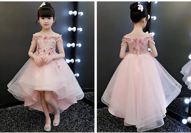 Элегантное детское розовое кружевное платье с цветочным рисунком для девочек детское праздничное свадебное бальное платье принцессы для выпускного вечера