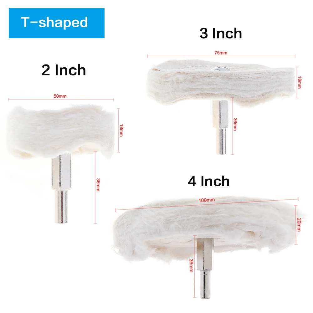 Цилиндрический Т-образный конус из белой ткани, полировальный круг, зеркальный буфер, ватный диск с хвостовиком 6 мм для полировки, шлифования металла, дерева