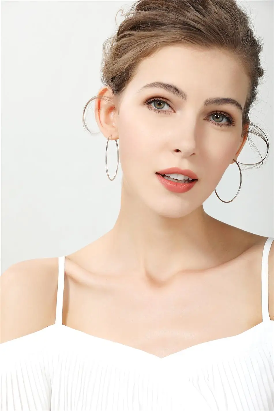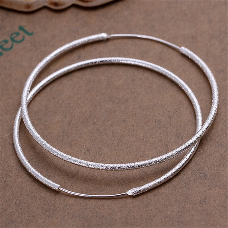 Серьги-кольца DOTEFFIL круглые матовые женские, большие украшения из стерлингового серебра 925 пробы с матовым покрытием, 50 мм, Подарочная бижутерия в европейском стиле
