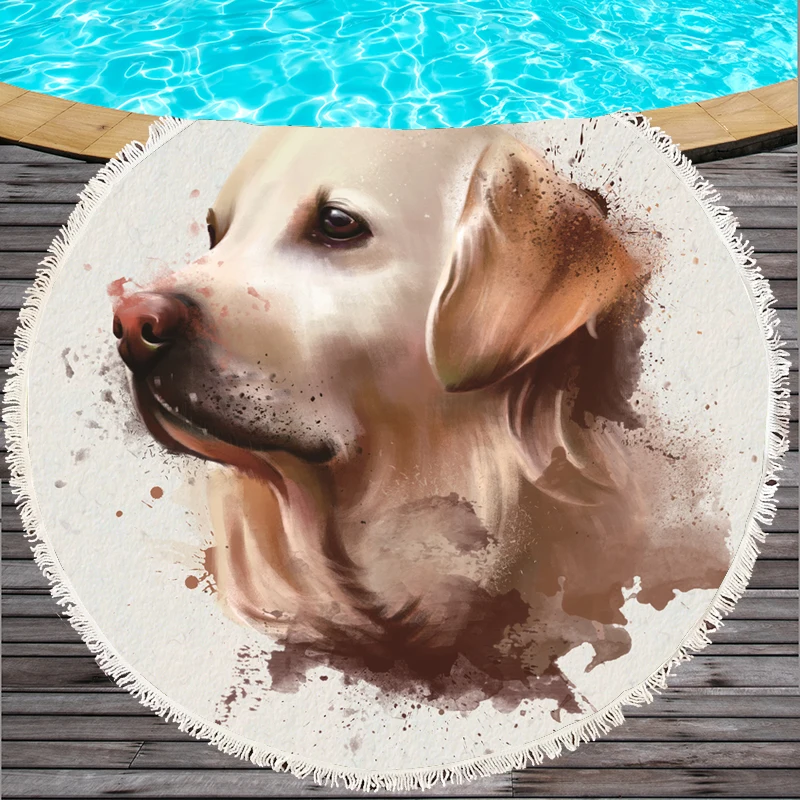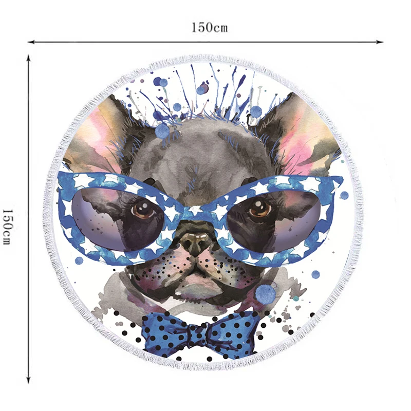 Круглое пляжное полотенце из микрофибры с изображением щенка, 150 см