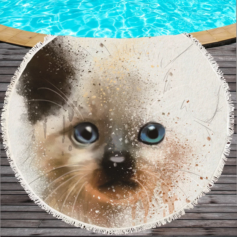 Круглое банное полотенце из микрофибры с принтом, с кисточками