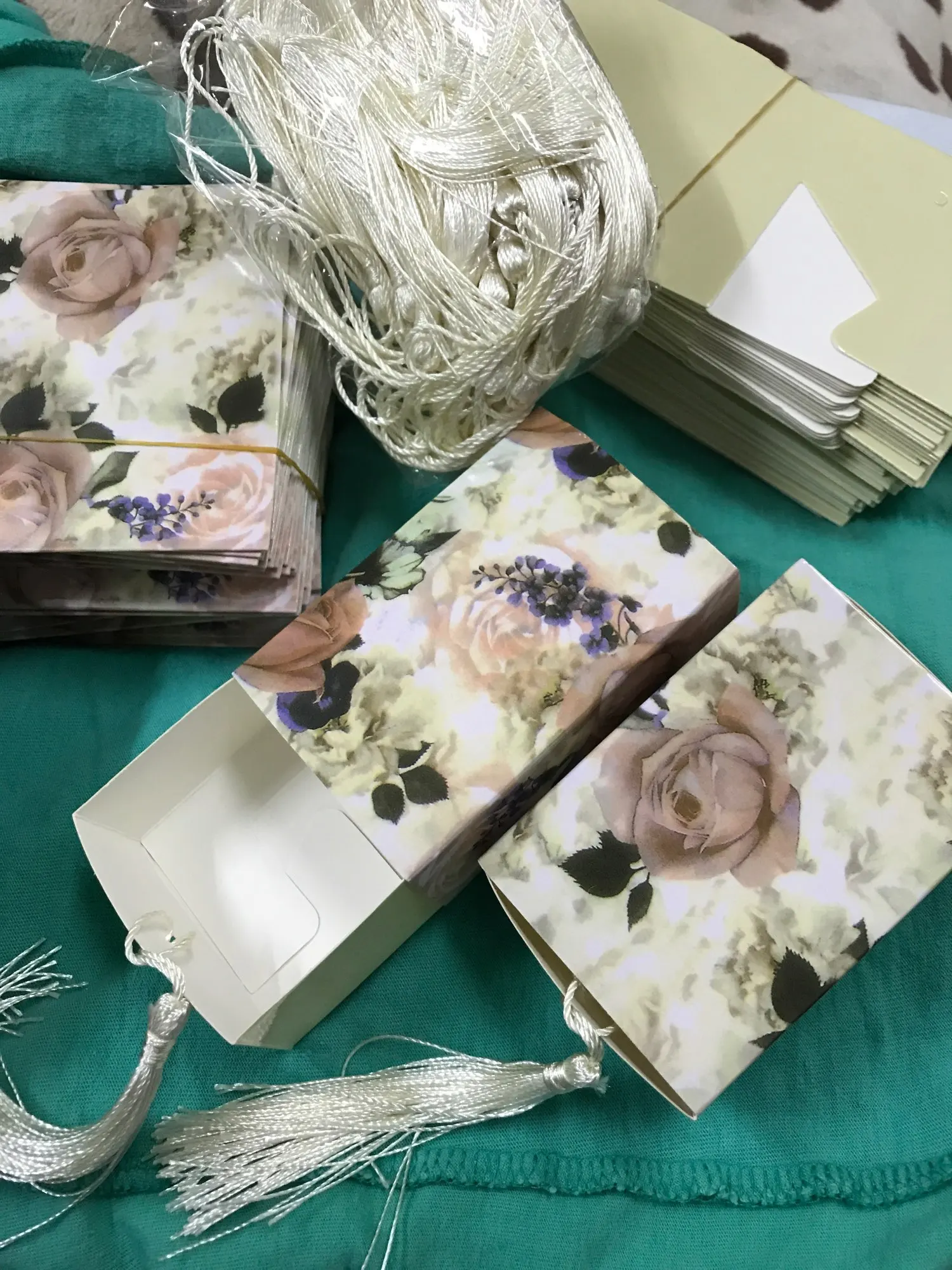 RMTPT 50 шт.лот Подарочная коробка для конфет с цветочным рисунком, дизайнерские коробки для сувениров вечерние бумажная коробка для творчества с кисточкой для вытягивания