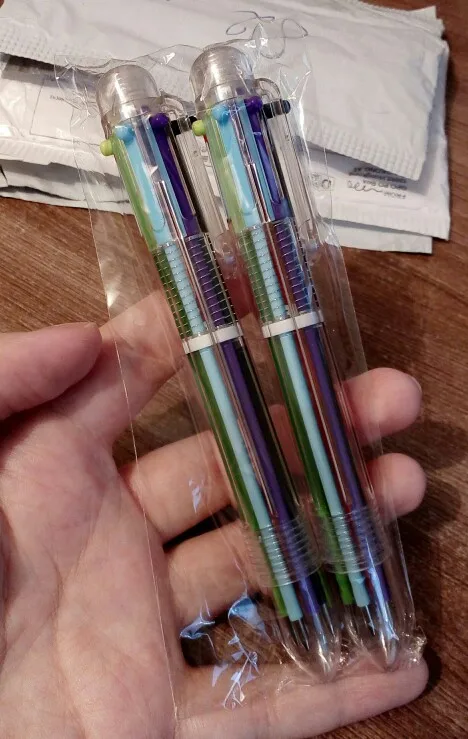 Некоторые цвета не совпадают с цветом стержня - голубого нет, вместо него классический - обычный темно-синий. По другим так же, туда-сюда. У двух из пяти ручек есть стержни, которые не выдвигаютсч до конца, застревают. В общем, качество так себе, второй раз покупать бы не стал.