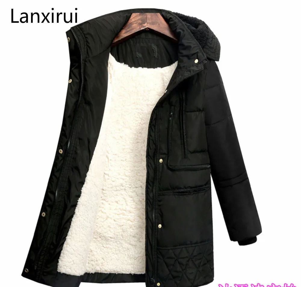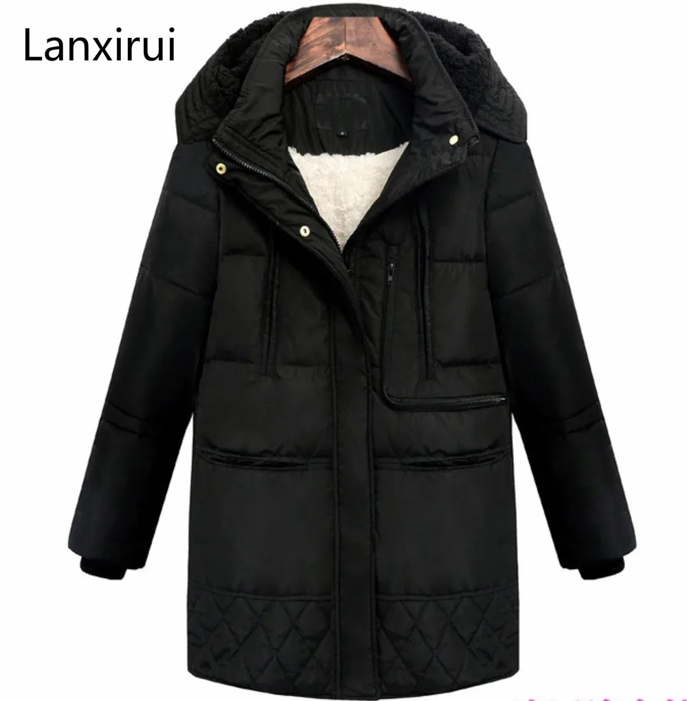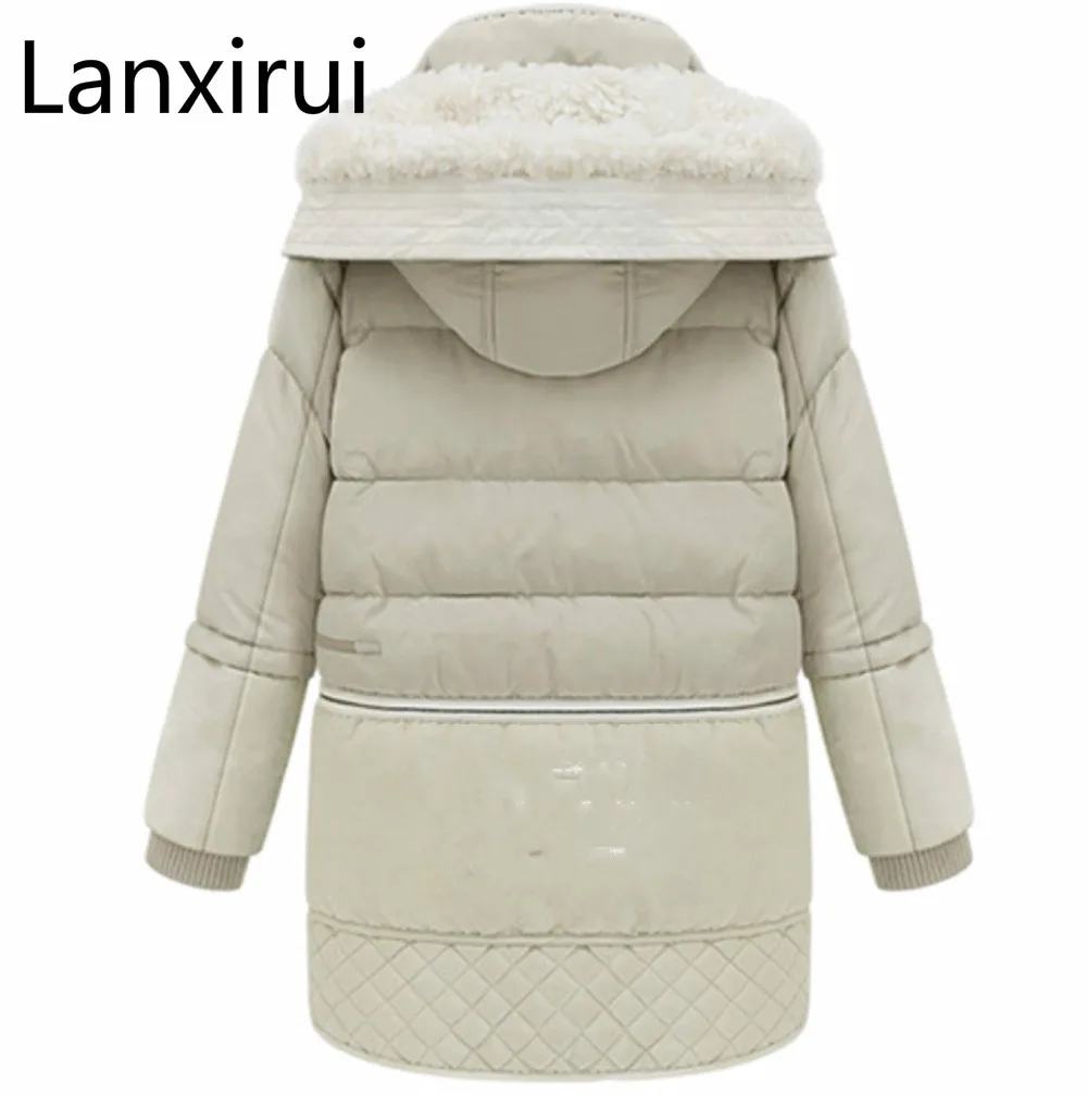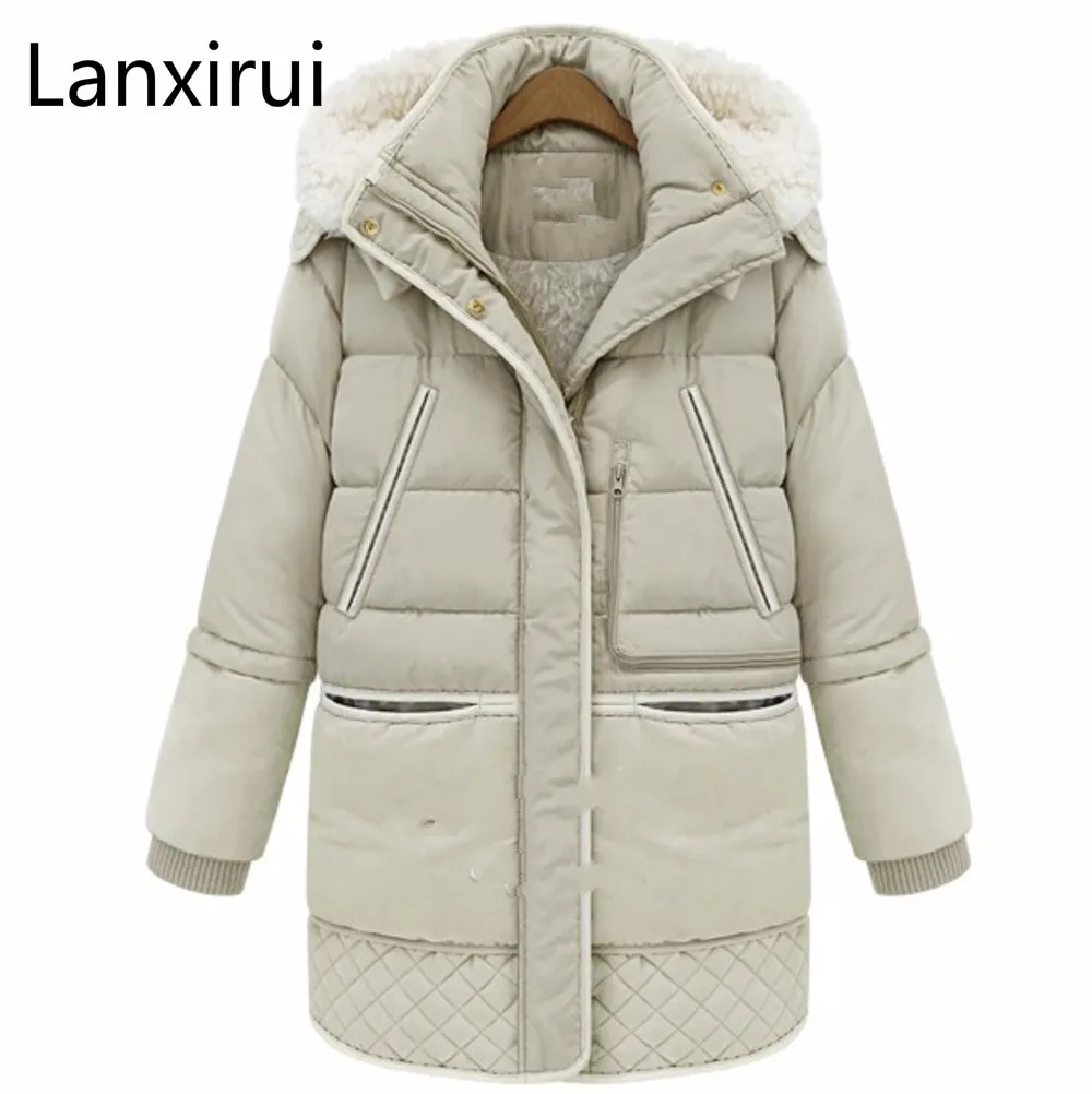 Женский пуховик на молнии, с капюшоном, из искусственной овечьей шерсти, длинное пальто на белом утином пуху, для осени и зимы